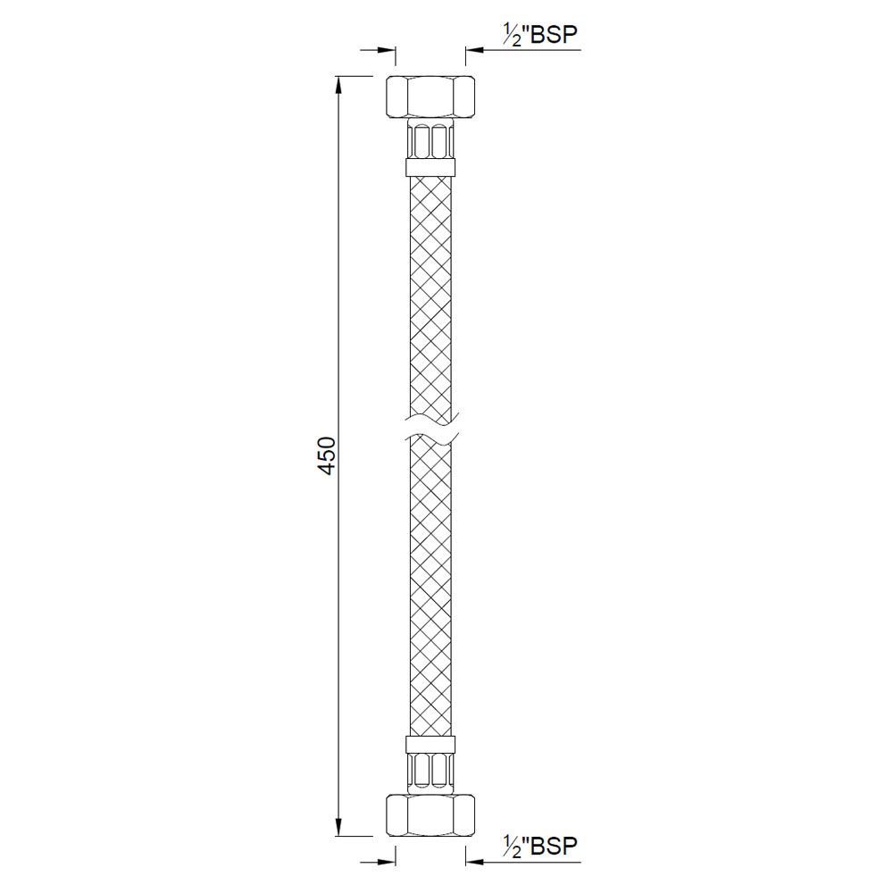 450mm Long Braided Hoses with Two 15mm Nuts & Rubber Washers without Nipple (Suitable for Geysers)