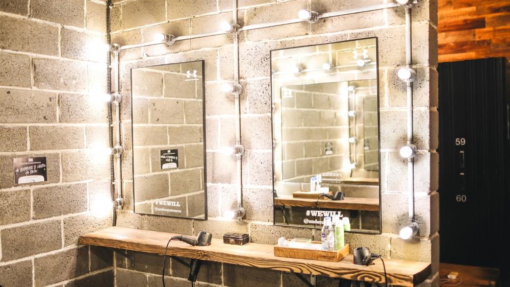 - Wall-sized mirrors spanning the whole wall behind sinks.