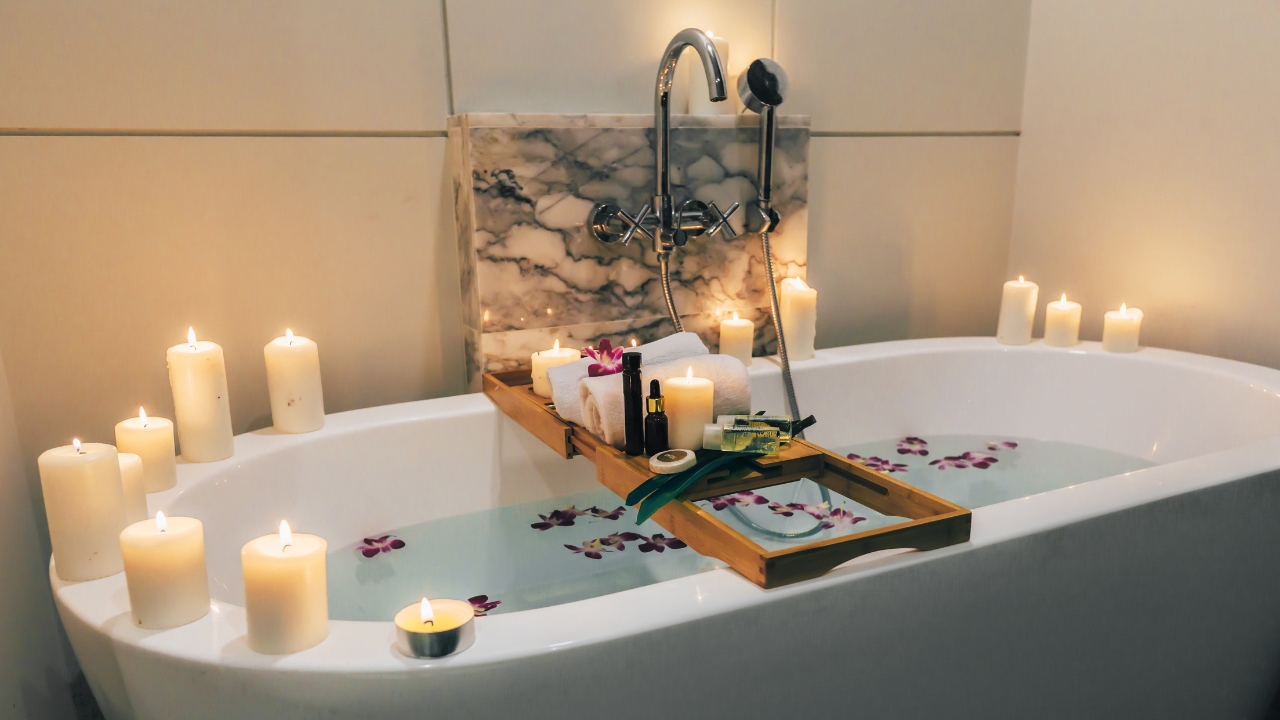 Keep wicks trimmed, and blow out candles before leaving the room unattended. The warm candlelight sets a distinctly spa-like mood.
