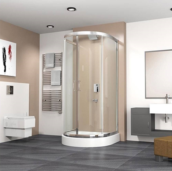 The Delta 180 model has 180 degree quadrant shaped shower enclosure with sliding door along with a shower tray at the bottom. Covered by 8mm glass on all three sides it has an entry from the front and is ideal for shower areas in the middle of the bathroom. It comes with a chrome finish giving it an exceptionally elegant look.