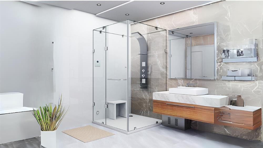 A smart shower incorporates advanced functionality and technology into an efficient footprint: